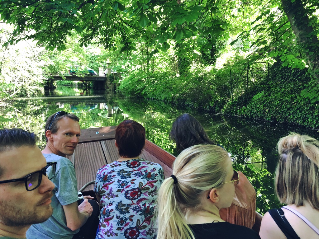Chacune des équipes a remporté 2 morceaux de puzzle, une fois tous les morceaux réunis, nous découvrons l’activité finale : une promenade en barque à fond plat dans le célèbre quartier de la Petite Venise de Colmar. Chouette j’en ai toujours rêvé !